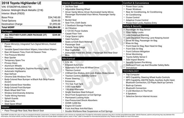 Black 2018 Toyota Highlander LE AWD 8-Speed Automatic Electronic with ECT-i 3.5L V6 Fully Detailed, AWD.